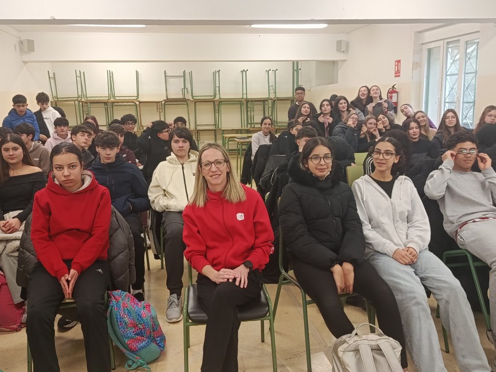 El alumnado de 3º de la ESO, 130 estudiantes en total, y siete docentes  disfrutamos la charla. Hubo varias preguntas muy interesantes y fotos del alumnado con Estela.